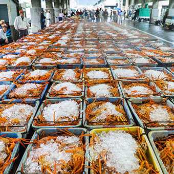 香住から直送される新鮮なカニと旬な魚介、【創業明治12年】香住最古の老舗「北由商店」が作る自家製の干物やへしこなど、是非「香住伝統の味」を大阪でお楽しみください。