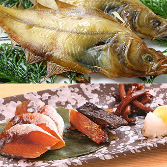 当店の干物は、創業明治12年香住最古の老舗「北由商店」で自社加工しています。大阪に居ながら香住の味を堪能して頂く。遠くてなかなか日本海へ行けない方、但馬地方出身の方から「こんなお店が大阪に欲しかった」と喜びの声を頂いております。また季節ごとに変わるお勧めの食材も提供させていただいております。